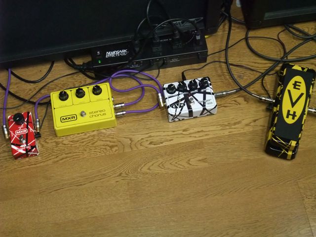 MXR EVH phase 90、MXR EVH117 flangerとオールドのMXR stereo chorus、そしてcry baby EVH-95 Eddie Van Halen Signature Wah Wahです。